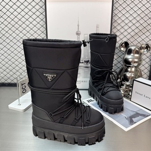 三角标厚底保暖雪地靴女2025冬季新款高筒防滑羽绒滑雪鞋加绒棉鞋