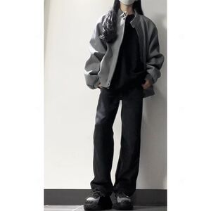 美式复古高级感灰色立领麂皮绒外套女春秋新款又酷又飒百搭夹克潮