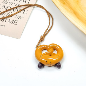 手工甜甜圈仿真碱水面包项链女长款毛衣链首饰颈链吊坠锁骨链配饰