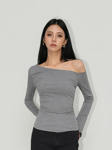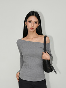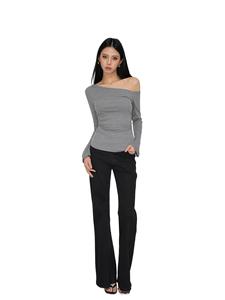 露肩长袖T恤女装经典高级2025春秋新款收腰绝美喇叭袖斜肩上衣