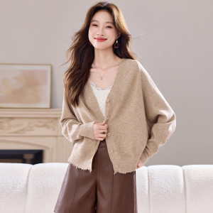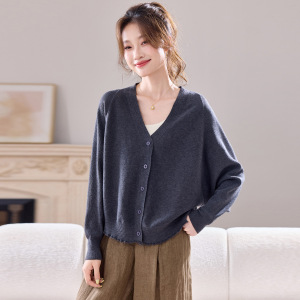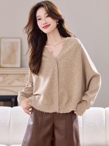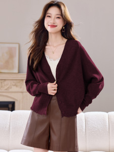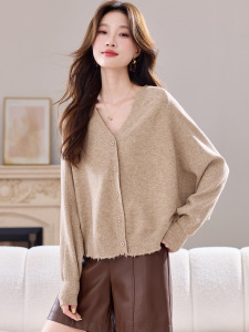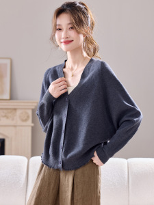 蝙蝠袖v领针织开衫女2025秋季新款韩版独特超好看外搭毛衣短外套