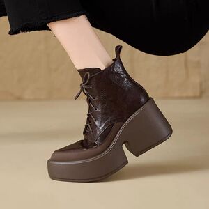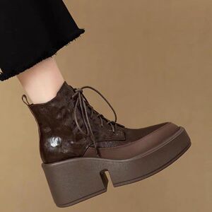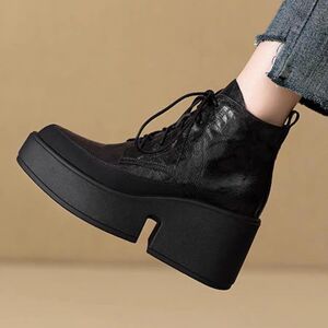 小个子高跟马丁靴女秋冬松糕厚底增高短靴女英伦风尖头粗跟瘦瘦靴