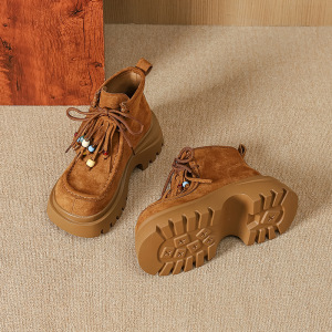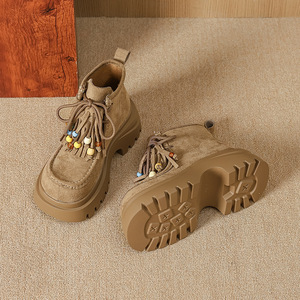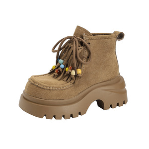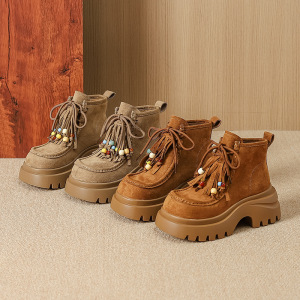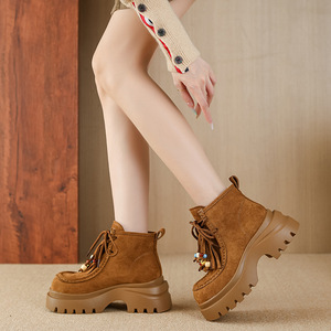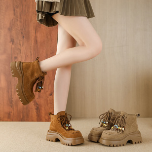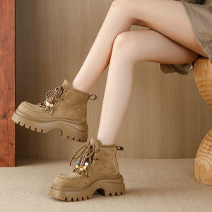 9691-6休闲2025年厚底增高系带串珠雪地百搭马丁靴子松糕跟女鞋子