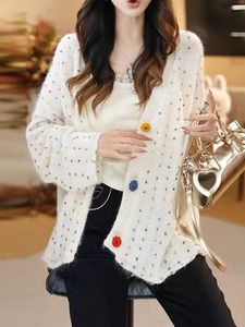 韩系彩色毛球针织开衫毛衣女2025秋季新款宽松慵懒松弛感小众上衣