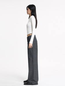 橙绢女装#美式潮牌复古条纹微喇牛仔裤男女同款秋新款宽松阔腿裤