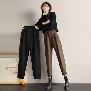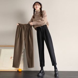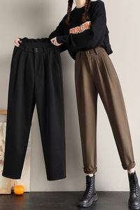 毛呢哈伦裤子女显瘦秋冬年新款高腰直筒小个子萝卜加绒休闲裤
