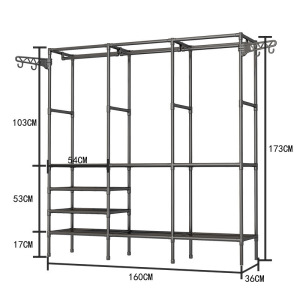多功能大空间简易衣帽一体架时尚简约风格加粗钢管收纳架落地架
