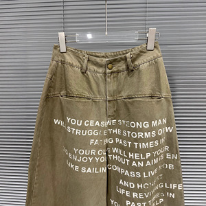 2025早秋新款美式字母印花牛仔裤女设计感宽松直筒阔腿裤弯刀裤