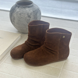 复古风2025秋冬新款褶皱磨砂皮内增高西部靴女百搭圆头显瘦勃肯靴