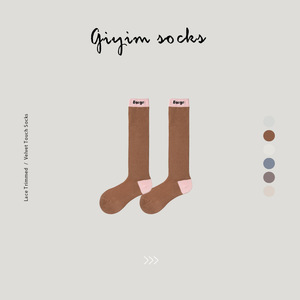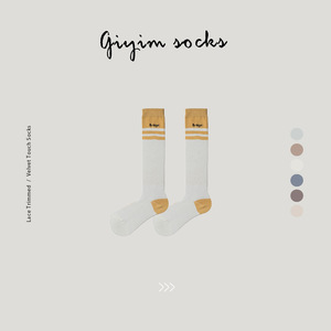 早秋韩版ins刺绣小腿袜棉纯色松弛感咖色系miu风条纹运动堆堆袜子