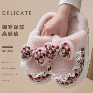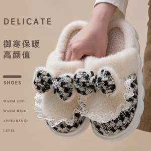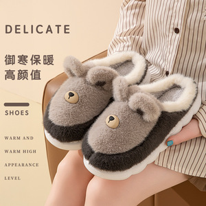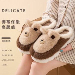 冬季情侣款棉拖鞋女居家踩屎感厚底防滑加绒保暖可爱月子棉拖男款