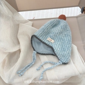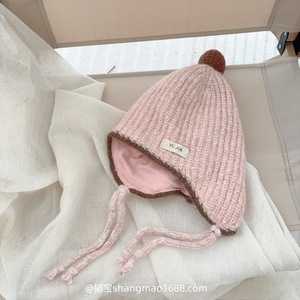 儿童帽子秋冬季韩版洋气毛球护耳帽男女童系带保暖防风针织毛线帽
