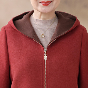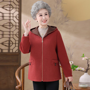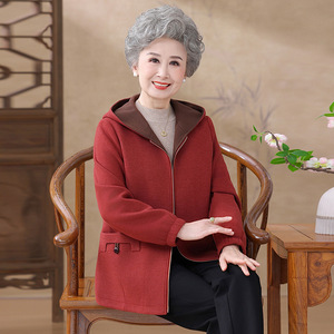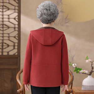 中老年人秋装女奶奶毛呢外套洋气妈妈秋冬装连帽上衣老人太太衣服