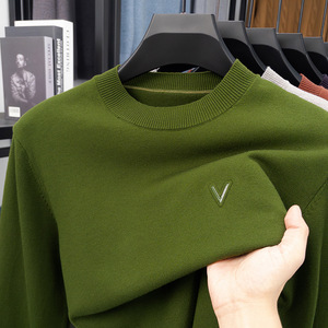 跨境含莱赛尔16针毛衣男2025秋冬新款圆领休闲嵌花打底男士针织衫