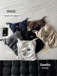 KITTIN 韩系极简风基础款自带罩杯百搭捏腰高弹吊带美背背心C3552