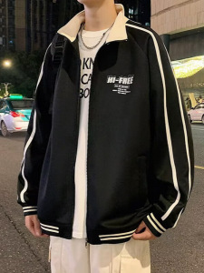 翻领外套男大码春秋款2025新款加肥加大帅气开衫卫衣美式休闲夹克