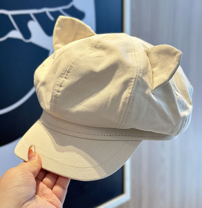 2025年新款猫耳朵八角帽子女春秋季复古英伦风报童帽日系鸭舌帽潮