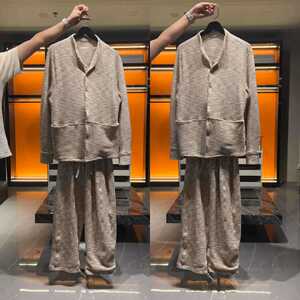 秋季新款时尚简约气质百搭长袖衬衫潮流INS韩版男士休闲痞帅套装