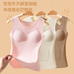 少女发育期保暖背心女2025新款带胸垫免穿文胸青少年德绒保暖内衣