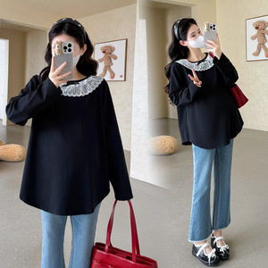 2025秋季新款孕妇宽松显瘦弹力遮肚休闲甜美花边孕妈T恤