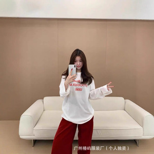 南油 高版 25秋季新款AC字母印花圆领宽松百搭长袖T男女同款上衣