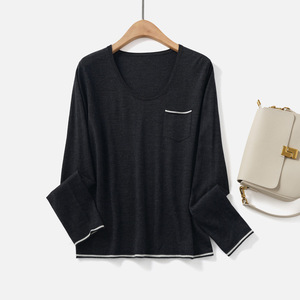 BC同款秋季新款女装羊毛针织衫毛衣 高级感v领珠链真丝打底衫上衣