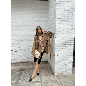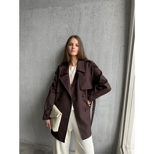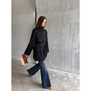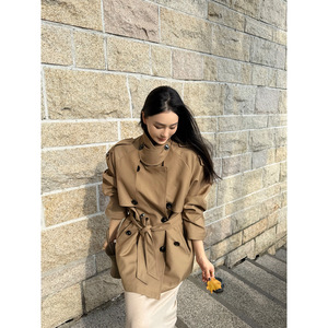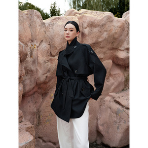 周淼ZHOUMIAO 【巴黎旧梦2.0】经典廓形翻领收腰短款风衣外套女
