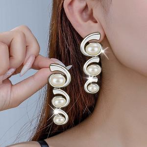 1对优雅女式欧美镶嵌椭圆耳钉畅销跨境时尚个性日常佩戴带耳饰