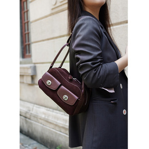 斜跨包复古真皮女包通勤大容量手提包简约2025单肩包新款保龄球包