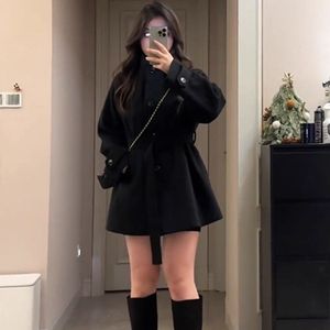 2025新款高领气质大衣女秋冬季中长款小个子短款韩系毛呢大衣外套