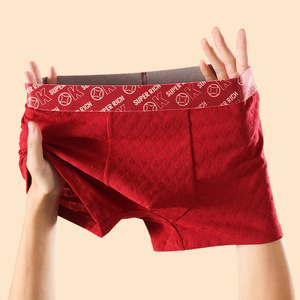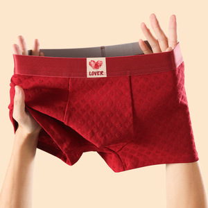 一件代发 纯棉大红男士内裤鸿运提花新年喜庆礼物本命年平角 P512
