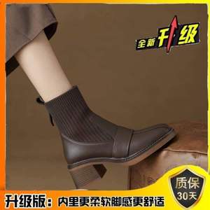 靴子女粗跟2025秋冬新款短靴女韩版加绒保暖袜子靴学生英伦马丁靴