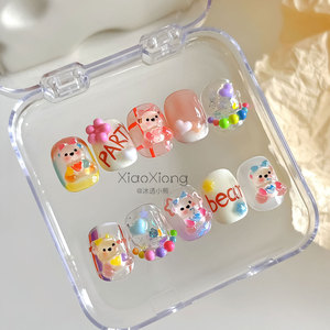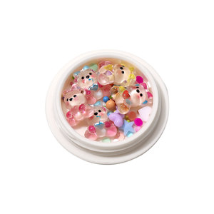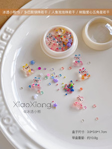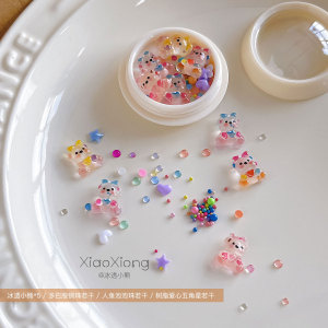 网红冰透小熊美甲材料包多巴胺混装爱心五角星树脂穿戴甲配饰批发