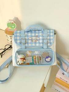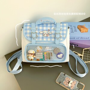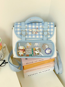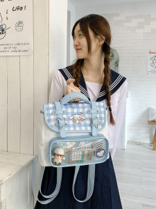 高颜值蓝色格子学院风透明痛包两用斜挎包小众设计可爱少女手提包