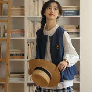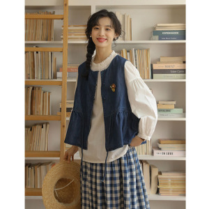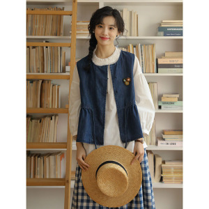 2025秋季新款日系森系牛仔系带马甲女圆领小个子穿搭叠穿开衫背心
