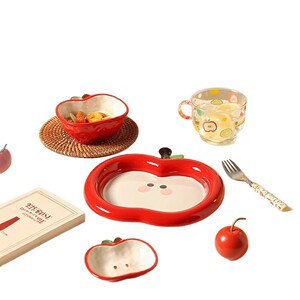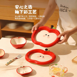 苹果餐具可爱的碗盘陶瓷家用菜盘精致下午茶点心盘漂亮饭碗小碟子