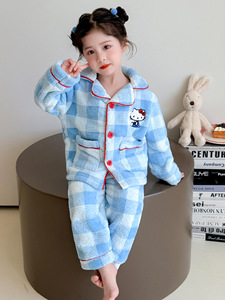 女小童睡衣套装秋冬款2025新款小女孩宝宝格子开衫儿童家居服套装