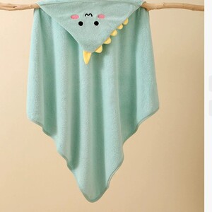 婴儿卡通包被珊瑚绒吸水儿童浴巾绣花抱毯带帽斗篷柔软新生儿抱被