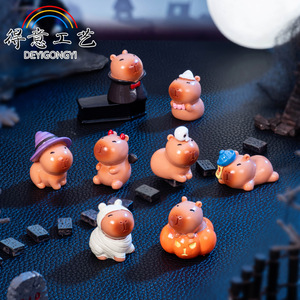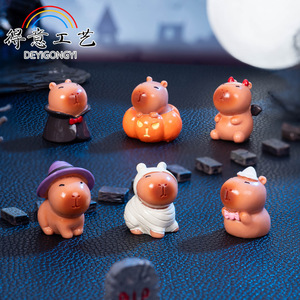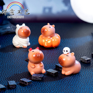 万圣节摆件创意卡皮巴拉水豚公仔树脂工艺品桌面车载diy装饰摆件