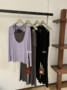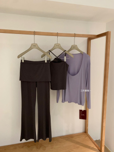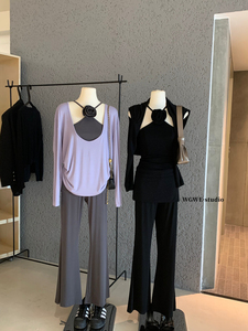 WGWE韩系立体花朵挂脖背心+长裤+长袖防晒上衣套装W7062(配胸针)