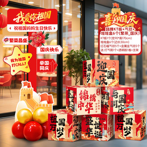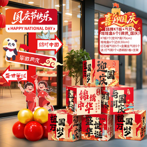 【锦绣国庆1.7m高】国庆立牌+堆堆盒6个(送全套安装工具)