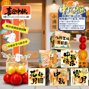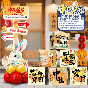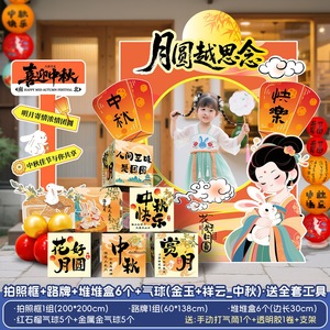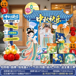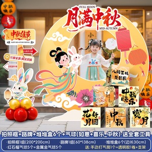 【皓月中秋2.0m高】中秋相框+月圆立牌+堆堆盒6个+气球(送全套安装工具)