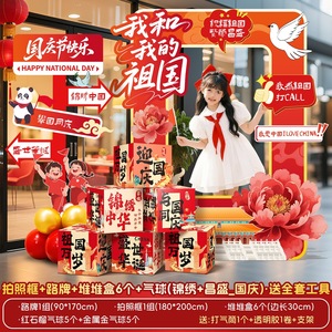 【华诞国庆2.0m高】国庆相框+喜迎立牌+堆堆盒6个+气球(送全套安装工具)