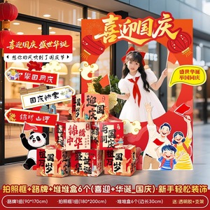 【华诞国庆2.0m高】国庆相框+喜迎立牌+堆堆盒6个(送全套安装工具)