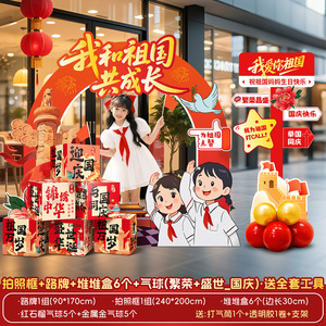 【锦绣国庆1.7m高】国庆立牌+堆堆盒6个+气球(送全套安装工具)