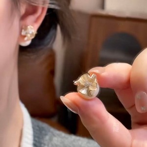 纯银针不规则花朵耳钉女高级感两戴珍珠耳环新款爆款秋冬耳饰百搭