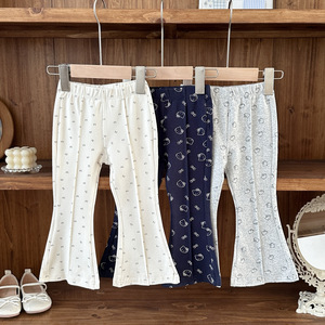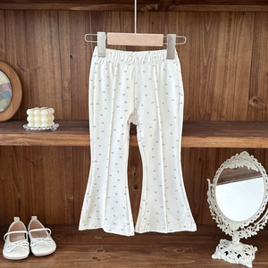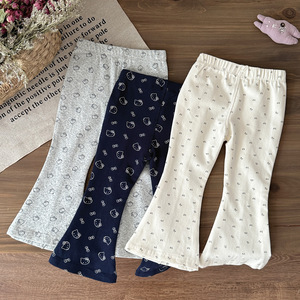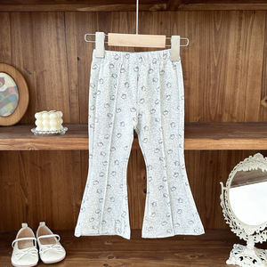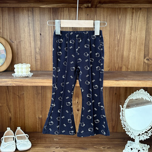 韩系秋款卡通kt猫可爱女童满印碎花长裤2025新款宝宝洋气喇叭裤