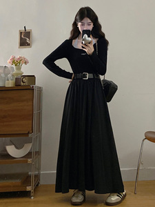 2025年仲夏夜之梦大码胖妹妹法式赫本风假两件针织拼接打底连衣