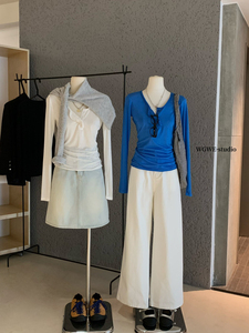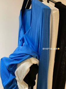 WGWE秋冬简约风设计感休闲打底衫薄款百搭修身V领长袖T恤女W7056