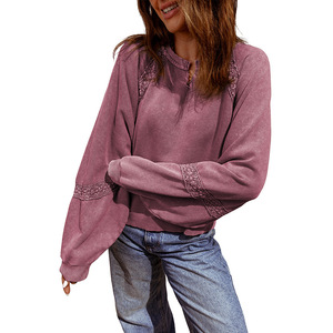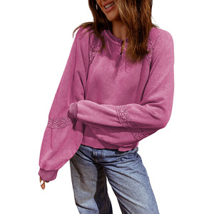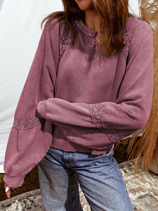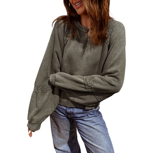 2025年秋季新款V领长袖套头衫女欧美时尚潮流蕾丝拼接宽松卫衣女